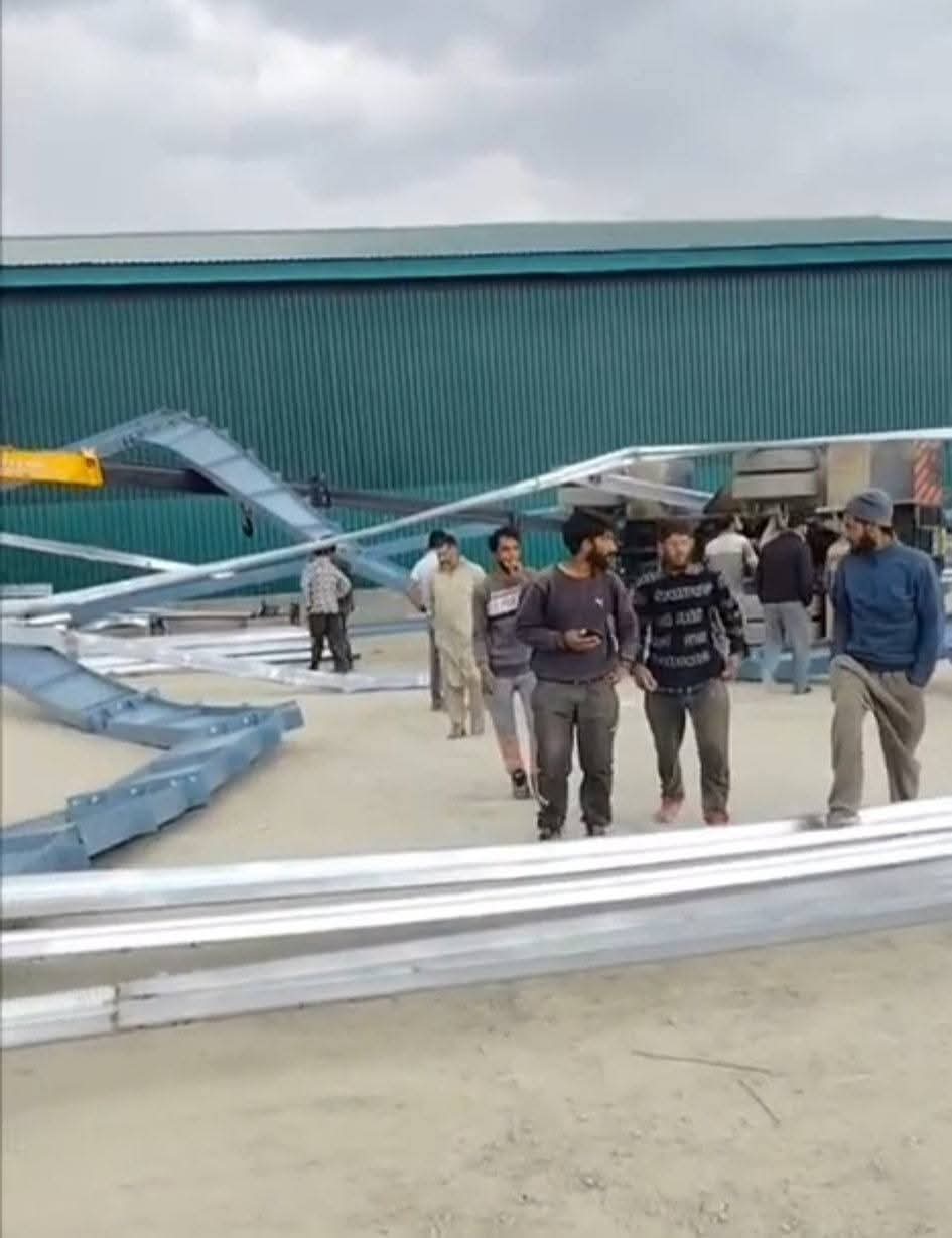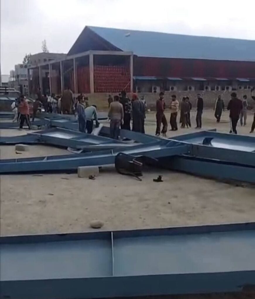An official told news agency–Kashmir News Observer (KNO) that due to strong winds the under construction cold storage unit collapsed resulting in injuries to at least five persons.