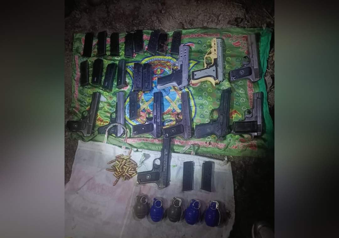 “Acting on a specific information that a huge cache of arms and ammunition has been smuggled in from across LoC, a police team led by SHO Police Station Karnah Mudaser Ahmad and PSI Ayush Sharma, Incharge Police Post Taad Ayush Sharma along with local Army unit undertook a search operation in general area of police post Taad,” a police spokesman said, adding, “During the course of search, huge cache of arms and ammunition including 10 pistols, 17 pistol magazines, 54 pistol rounds and 5 grenades, were recovered from Hajam Mohallah, Taad Karnah”. Apparently, he said, it looks like a new consignment smuggled for militants activities in Kashmir Valley. “However timely action of Police and local Army thwarted nefarious designs of adversary of committing innocent killings at the hands of (militants) in the valley,” he added.