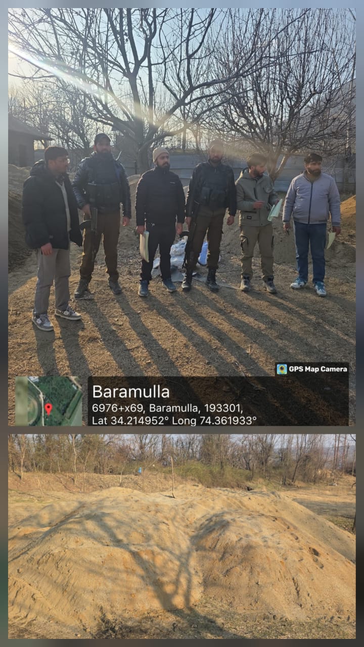 Baramulla Police, in coordination with the Geology & Mining Department, Baramulla, conducted a joint raid at Stadium Colony, Janbazpora, during which a quantity of illegally dumped clay sand was seized.