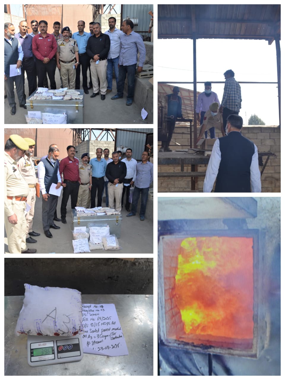 The contraband was incinerated at the authorized facility in Lassipora, Pulwama under strict legal protocols. The exercise was carried out in the presence of ADO DPHQ Baramulla, DySP CID CIK Pulwama, and DySP ANTF Kashmir, ensuring transparencyand accountability at every stage.