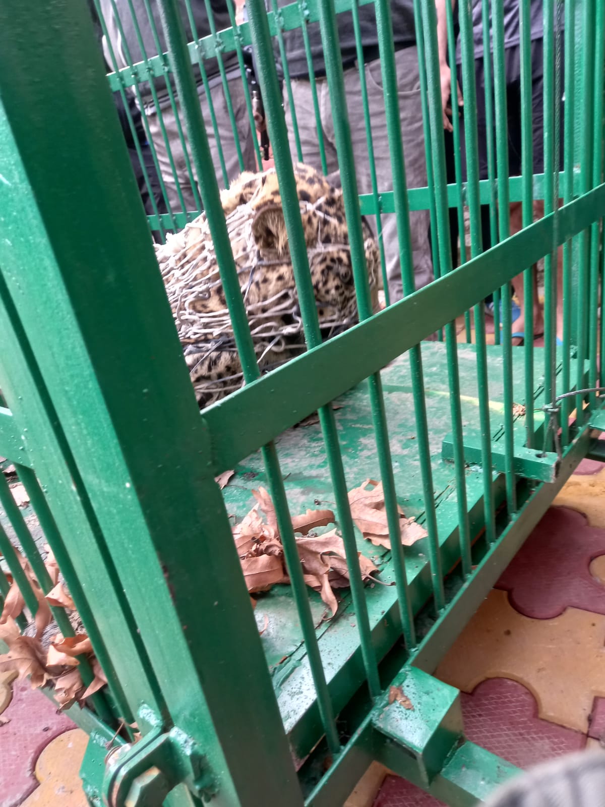 After that wildlife was informed they reached on sport and caged the leopard.