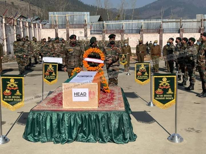 Locals told news agency—Kashmir News Observer (KNO) that, body of TA solider Sameer Ahmed Malla, who was found dead at village Labren Dalwesh area of Khag three days after he went missing, reached to his native village on Friday morning.