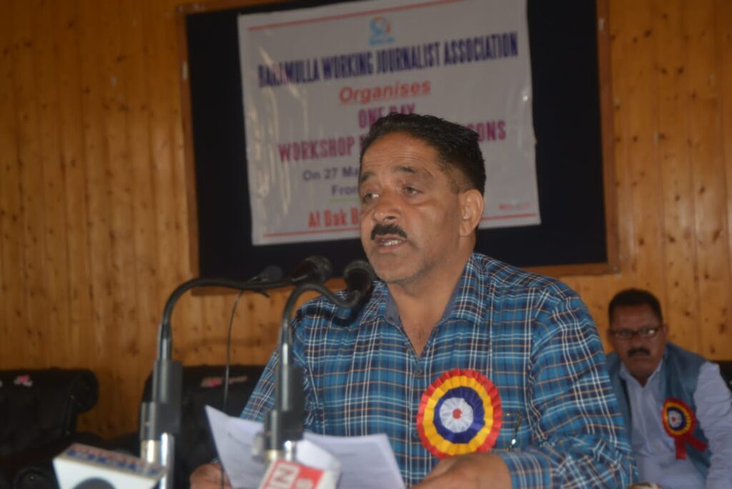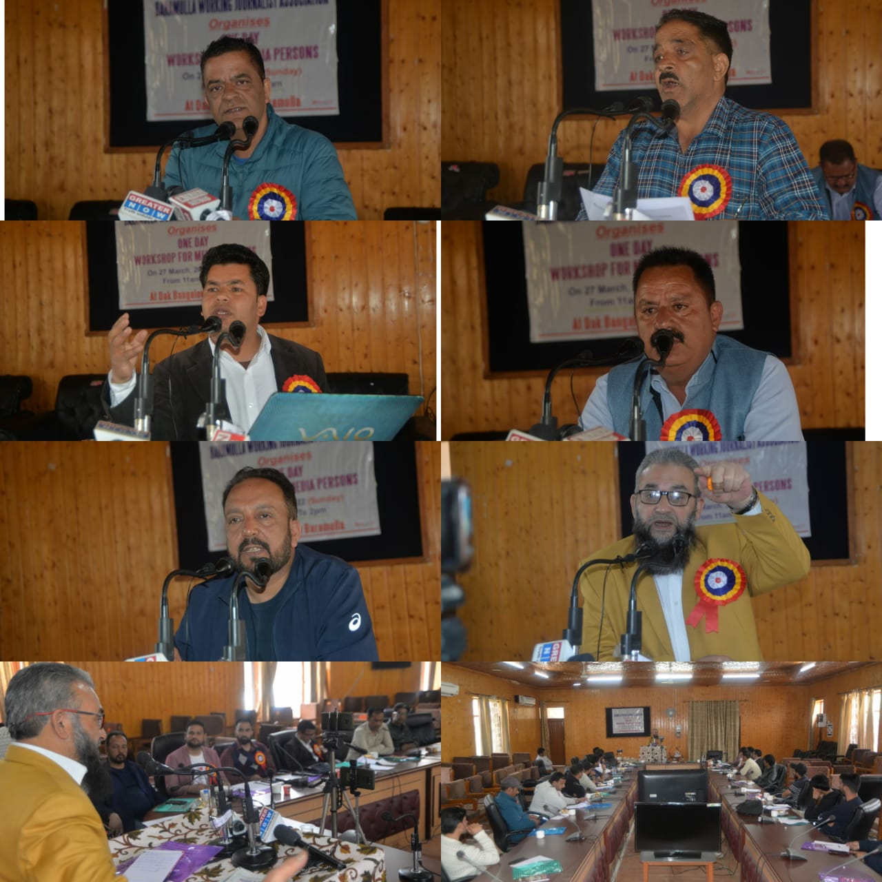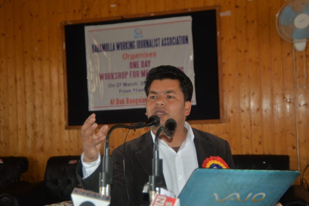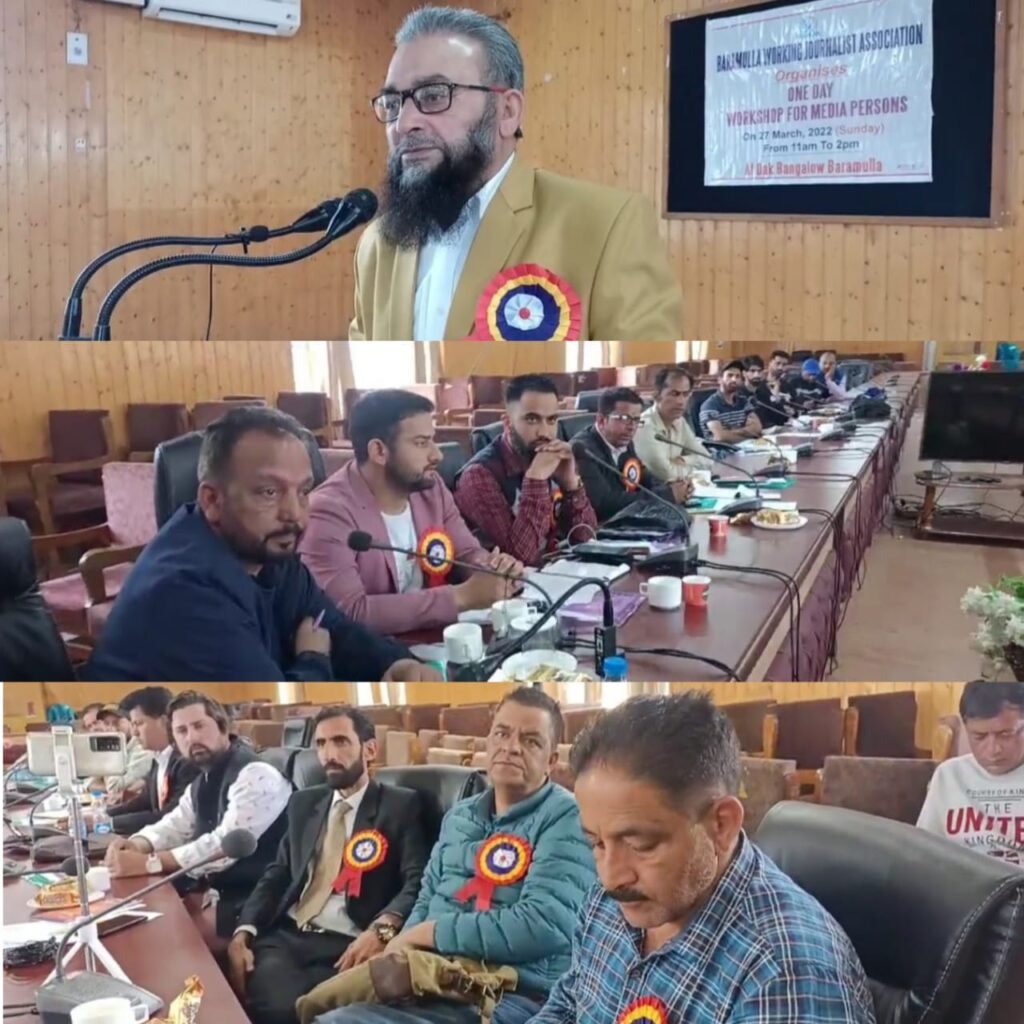 BARAMULLLA MARCH 27: In order sensitize the media persons about current unfolding challenges and importance of capacity building of journalists in digital age, Baramulla Working Journalist Association (BWJA) organized a one day ‘Media Workshop’ on Sunday at Dakbanglow Baramulla in which members of association from across the district participated.