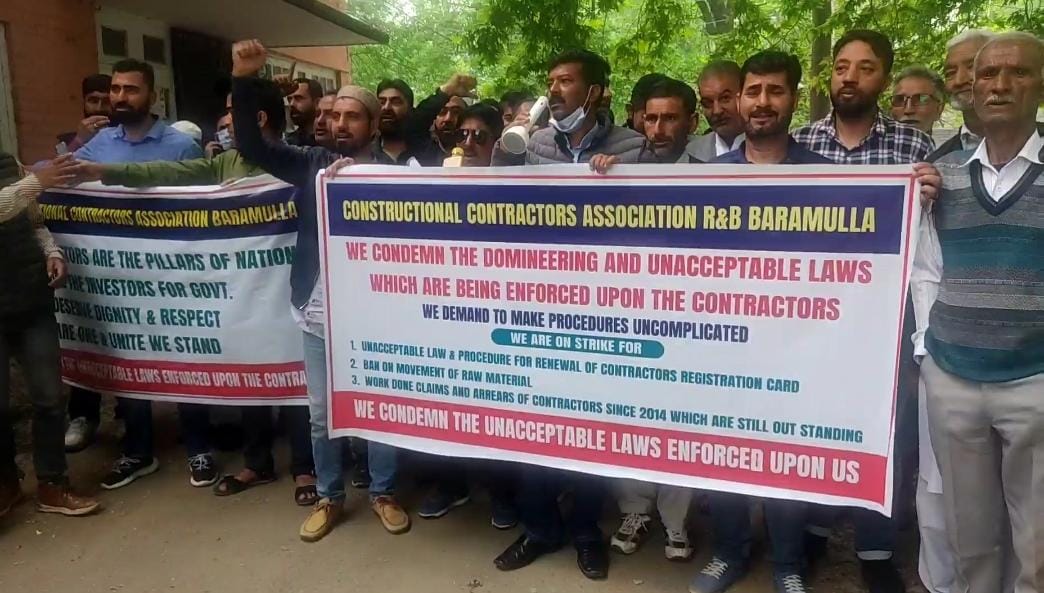 The Construction Contractors Association R&B Baramulla on Tuesday held a protest demonstration inside the premises of R&B over new norms regarding renewal of cards of contractors.