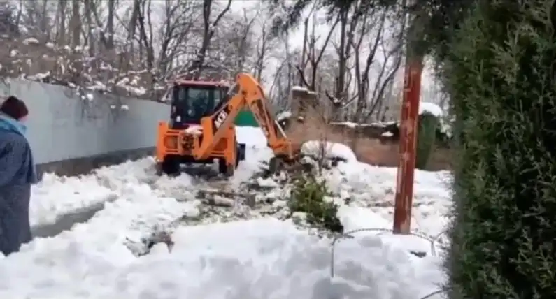 Anantnag Jan 31: Continuing the onslaught against influential encroachers, District Administration Anantnag on Tuesday held massive anti-encroachment drive against Peerzada Mohd Syed, former chief Jammu Kashmir Pradesh Congress and Ex Minister, Syed Farooq Andrabi, former legislator from Dooru and Ex MoS and heirs of former Chief minister Syed Mir Qasim, at Dooru.