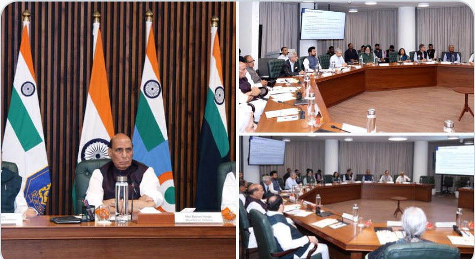 The Informal Group of Ministers (IGoM), headed by Raksha Mantri Shri Rajnath Singh, took stock of India’s readiness in view of the recent developments in West Asia during its third meeting at Kartavya Bhawan-2, New Delhi on April 08, 2026. Minister of Finance & Corporate Affairs Smt Nirmala Sitharaman; Minister of External Affairs Dr S Jaishankar; Minister for Agriculture & Farmers’ Welfare and Rural Development Shri Shivraj Singh Chouhan; Minister of Commerce and Industry Shri Piyush Goyal; Minister of Chemicals & Fertilizers Shri Jagat Prakash Nadda; Minister of Petroleum and Natural Gas Shri Hardeep Singh Puri; Minister of Consumer Affairs, Food and Public Distribution Shri Prahlad Joshi; Minister of Railways, Information and Broadcasting, Electronics & Information Technology Shri Ashwini Vaishnaw; Minister of Parliamentary Affairs Shri Kiren Rijiju; Minister of Civil Aviation Shri Kinjarapu Rammohan Naidu, and Minister of State (Independent Charge) of the Ministry of Science & Technology Dr Jitendra Singh attended the meeting.
