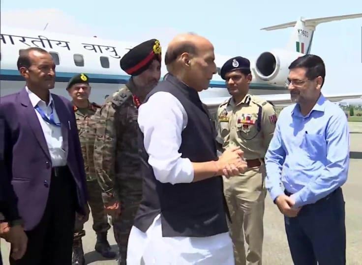 Defence Minister Rajnath Singh arrives in Srinagar