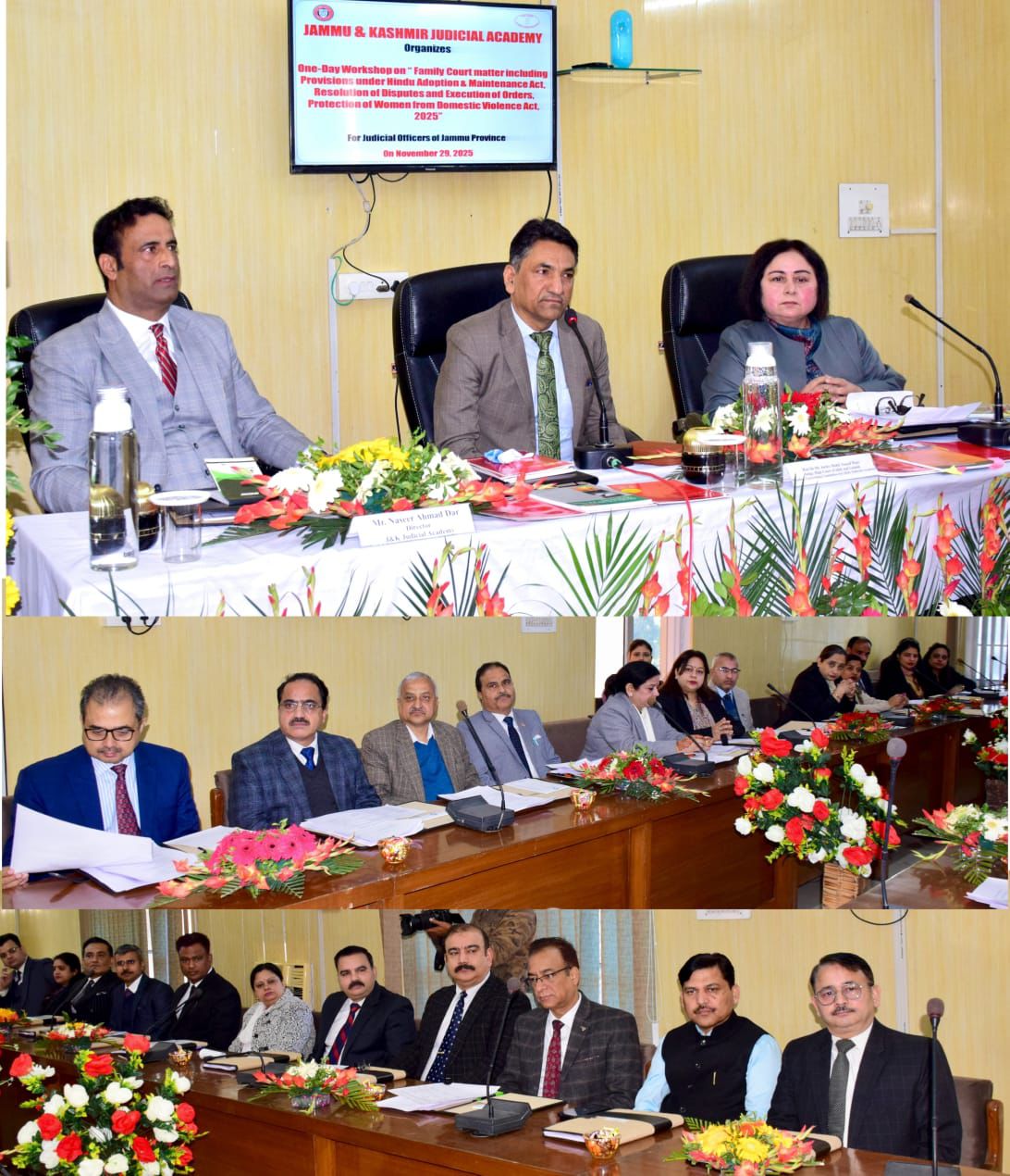 Under the patronage of Justice Arun Palli, The Chief Justice, High Court of Jammu & Kashmir and Ladakh (Patron-in-Chief, J&K Judicial Academy), guidance of Chairperson and Members of Governing Committee for J&K Judicial Academy, Jammu & Kashmir Judicial Academy today organized a One-Day Workshop on “Family Court Matters, including provisions under the Hindu Adoption and Maintenance Act, Guardian and Wards Act, Resolution of Disputes, Execution of Orders, and the Protection of Women from Domestic Violence Act, 2005” at Janipur, Jammu.