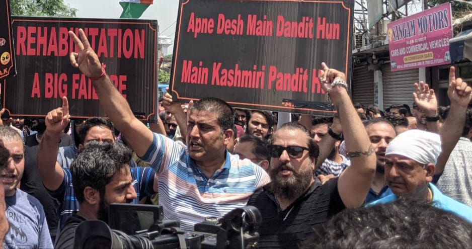 Hundreds of employees, both men and women, assembled under the banner of ‘All Migrant Employee Association Kashmir’ outside the Press Club carrying placards, some of which read, “Don’t rehabilitate us at the cost of our blood! Orphaning our children! Widowing our wives! and the only solution is relocation anywhere outside Valley.” Nearly 4,000 Kashmiri Pandits are working in different departments in the Valley after they were selected under the Prime Minister’s employment package announced in 2008.