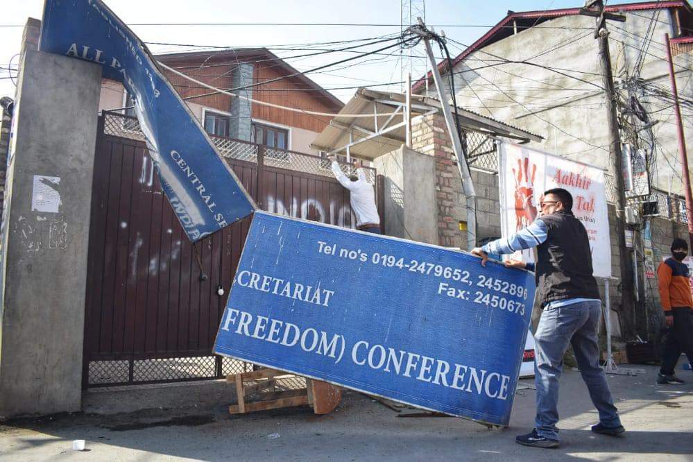 The protesters daubed “India” on the main gate of the Hurriyat’s central building and brought down the signboard of the separatist amalgam, the officials said.