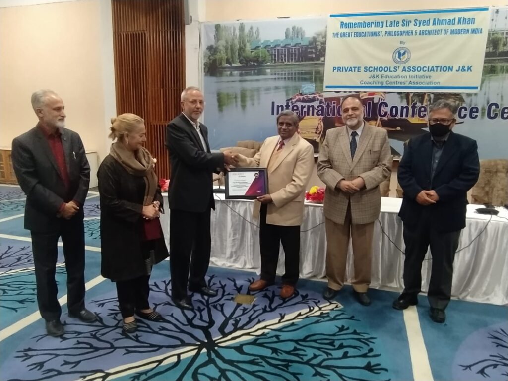 In his welcome address, G N Var, President PSAJK said that Sir Syed Ahmad Khan has been relevant in all times and will be so for all times to come. Var said that this function is an initiative to celebrate Sir Syed Day by the private education sector in an organised way. He said that this will be a routine affair of the private education sector in future so that we can create awareness among the masses about the message and mission of Late Sir Syed Ahmed Khan. Var said that lively nations have the honour that they remember and respect their assets.