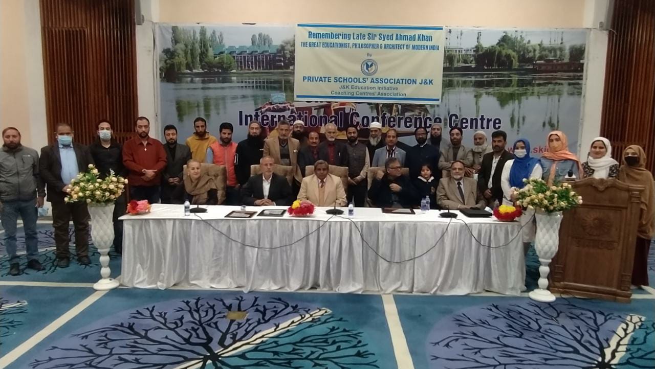 Private Schools,” Association Jammu and Kashmir (PSAJK) today organised a conference on the birth anniversary of great educationist, philosopher and one of the architects of modern India, Sir Syed Ahmed Khan at SKICC Srinagar.