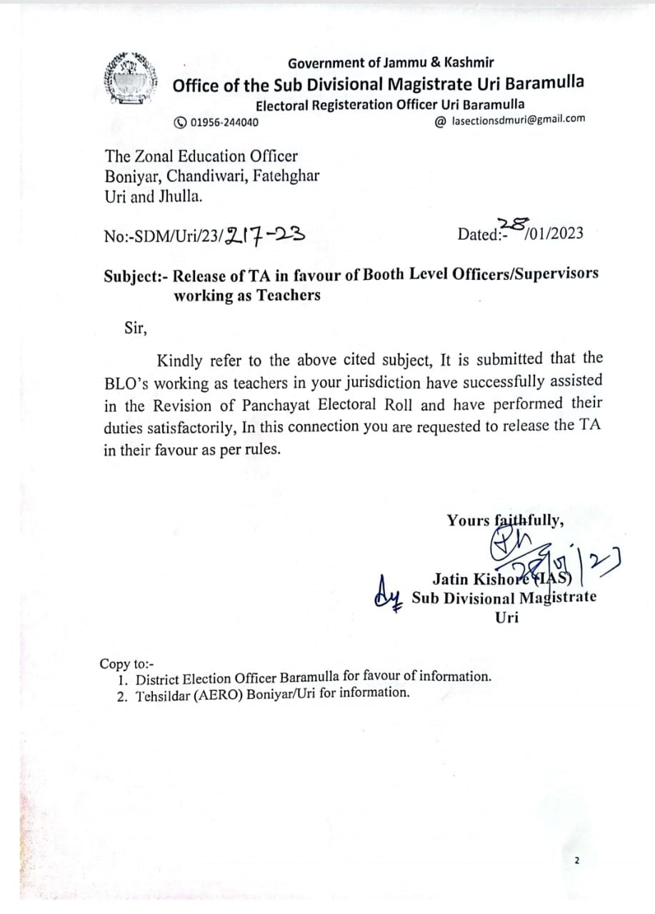 “As directed by the Director School Education, Kashmir all the DDOs are hereby directed to verify the genuineness of all 2009 and other appointees by reference to original orders issued by Directorate of School Education and selection list of JKSSB,” reads the order, a copy of which lies with SNS Kashmir . The order states the documents should reach to the office of CEO Srinagar by or before February 4 of 2023 duly supported by relevant documents confidentially.