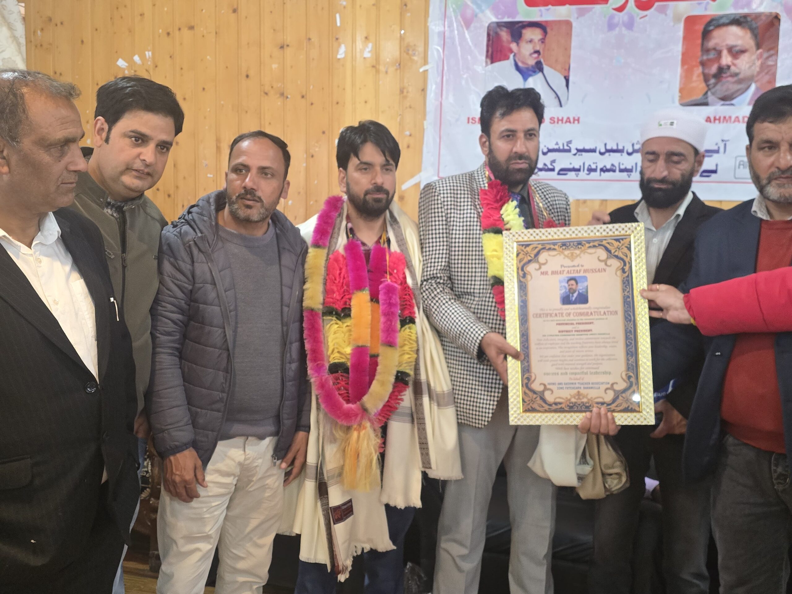 BARAMULLA: The cadre of the Jammu & Kashmir Teachers Association today felicitated the newly nominated District President of the Association for Baramulla, Mr. Mushtaq Ahmad Bhat, and the Provincial President, Mr. Altaf Hussain Bhat, at a dignified ceremony held at the Dak Bungalow in Baramulla.