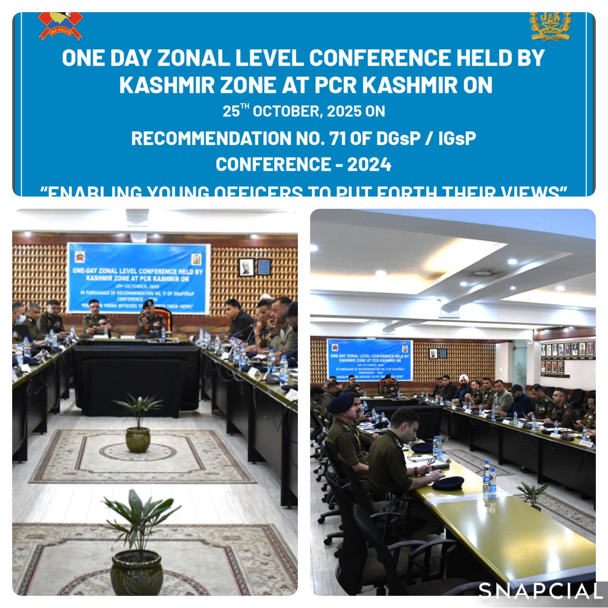 The Zonal Police Headquarters Kashmir today hosted a one-day zonal-level conference at the Police Control Room, Kashmir, in pursuance of the recommendations of the DGsP/IGsP Conference–2024. The event aimed to institutionalize these recommendations and provide a platform for young officers to share innovative ideas and field perspectives on contemporary policing challenges.